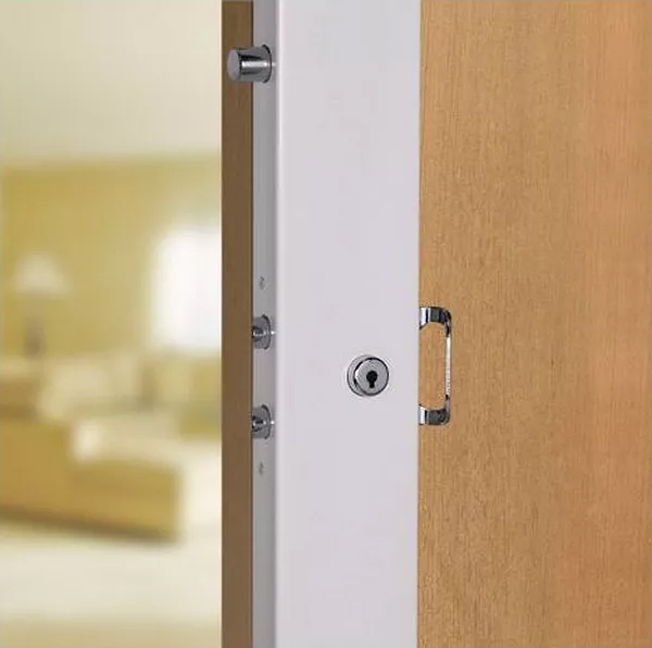 Serrure carénée multipoint possédant 6 points de fermeture avec des pênes ronds rotatifs de 22 mm de diamètre limitant les tentatives d’effraction.